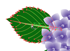 クリックした部分のパーツだけが選択されます。私はちょうど葉っぱ中央の葉脈部分をクリックしましたから、葉脈だけが選択されました。