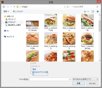 「ファイル」メニューから「配置」をクリックして、配置ダイアログを開きます。