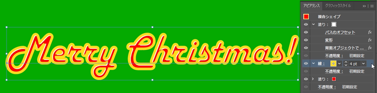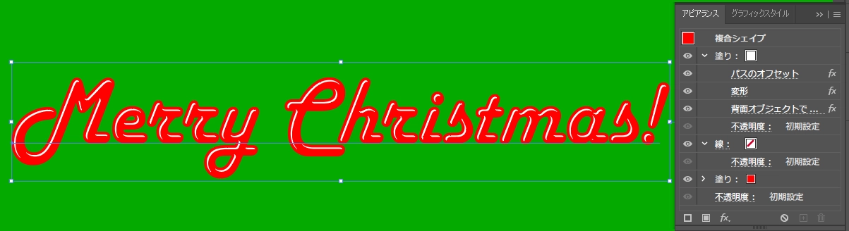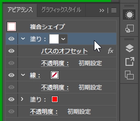 「アピアランス」パネルを開くとこのようになっています。(クリックで拡大します)