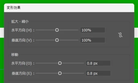 変形効果ダイアログ内の「拡大・縮小」は100%のままで、「移動」の数値を「0.8」と入力します。