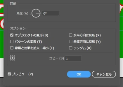 「回転」は、そのままで、「オプション」は、「コピー:1」にして「OK」をクリックします。